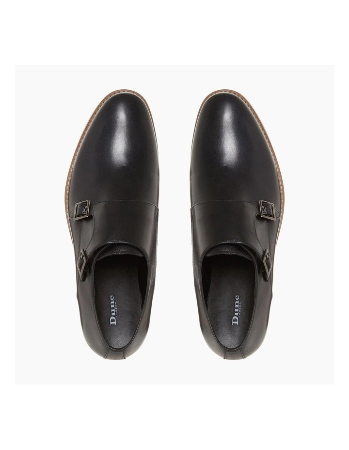 Upgrade your smart-casual wardrobe with this monk shoe from Dune. Designed with a double buckle fastening and a chiselled toe toe. It’s finished with a stacked block heel and contrasting sole.