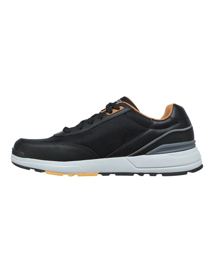 Modern comfort and sporty style combine in the Skechers Street Relaxed Fit: Rozier – Santez shoe. This lace-up sneaker features a leather and mesh upper with a Skechers Air-Cooled Memory Foam insole and a Skechers Goga Mat Arch for added support.